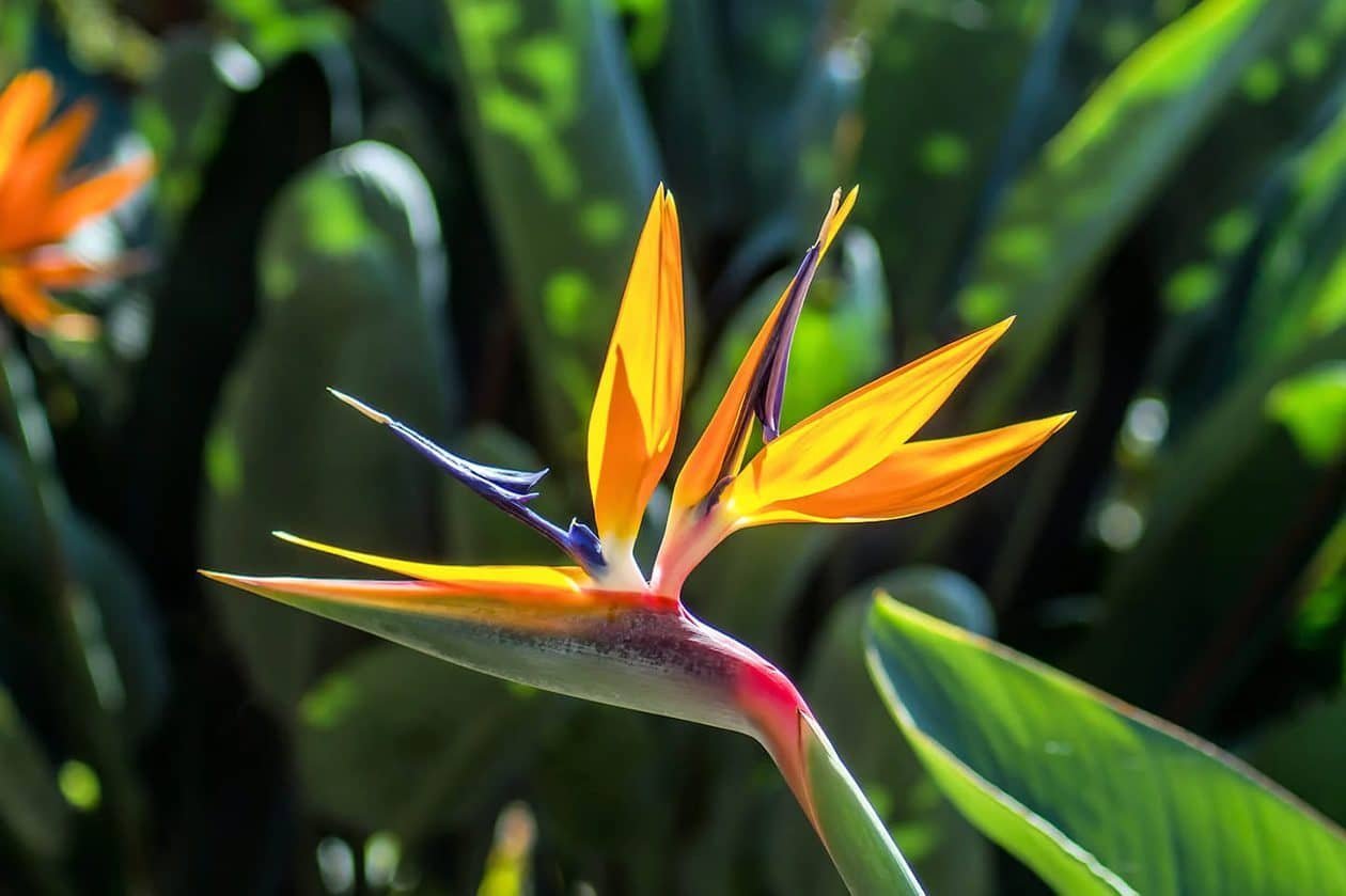 Strelitzia reginae je najpopularnija biljka rajske ptice. Ima plavo i narandžasto cveće i naraste do oko 1,5 m.