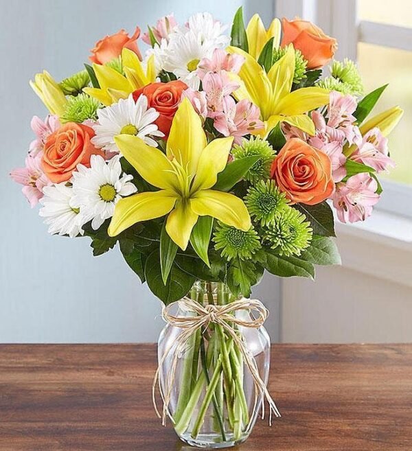 „Beli Dodir” je nežni buket sastavljen od belih ruža, kala, alstromerija i gipsofile, koji odiše elegancijom i mirom. Aranžman u staklenoj vazi idealan je za izražavanje saosećanja, zahvalnosti ili za svečane prilike poput venčanja i godišnjica.