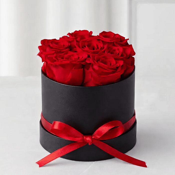 Ponekad najbolje stvari dolaze u malim pakovanjima. Ovaj slatki poklon je savršen primer. Prave ruže u boji po vašem izboru – crvenoj, ružičastoj ili lavanda – biraju se zbog svoje lepote i bujnosti, a zatim se pažljivo konzerviraju kako bi zadržale svoj sjaj. Raspoređene su u šarmantnoj dekorativnoj kutiji u obliku šešira, ukrašenoj trakom koja se usklađuje sa cvetovima.