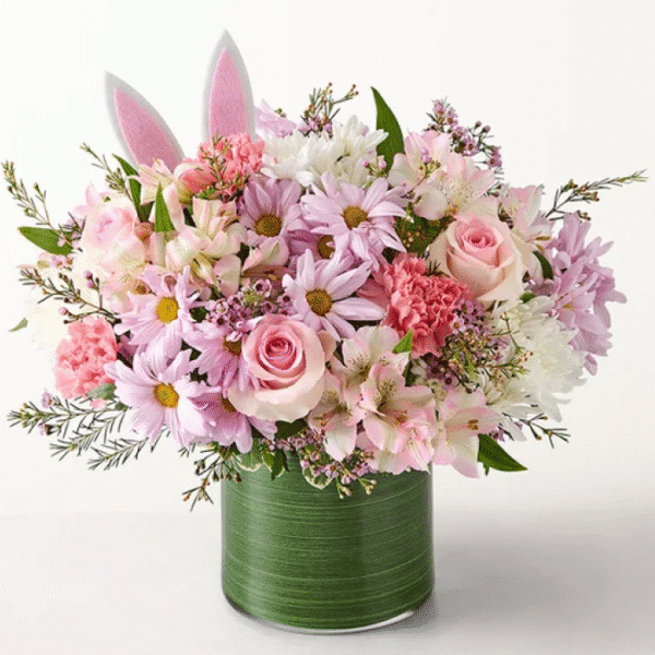 Unesite malo čarolije u njihovu Uskrs ovom saksijom u obliku zeca. Pored zakrivljenih zečijih ušiju, žuta saksija je ukrašena belim reljefnim floralnim motivom. Stiže sa biljkom ružičaste ruže, koja je u pupoljcima i spremna da procveta. Učinite poklon još slažim dodatkom gum bombona u obliku zeca u akrilnoj kutiji sa porukom „Srećan Uskrs”.